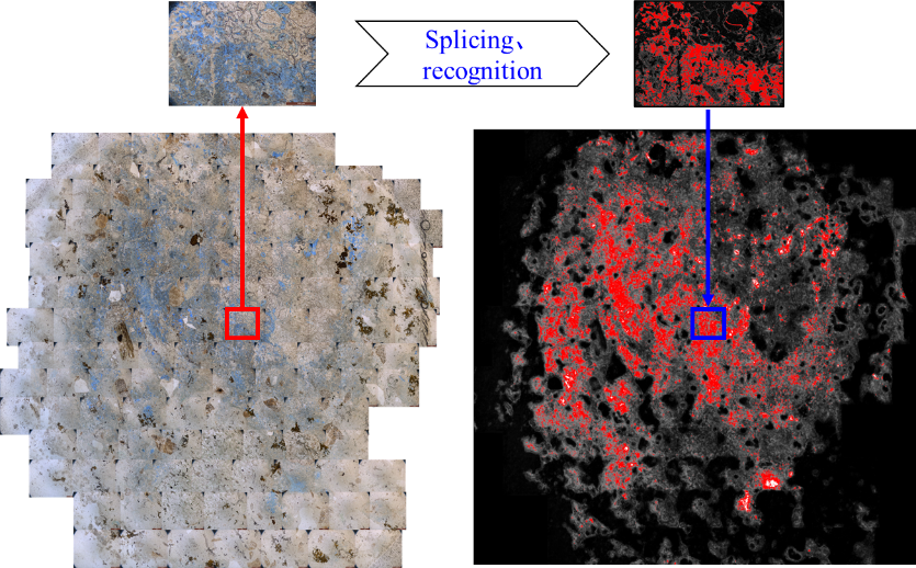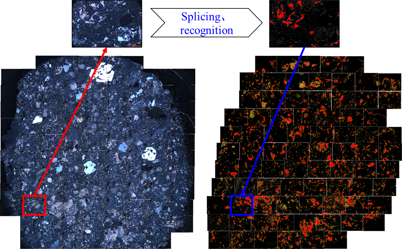 图1.德惠断陷火石岭组主要成岩作用大视域拼接图像识别图