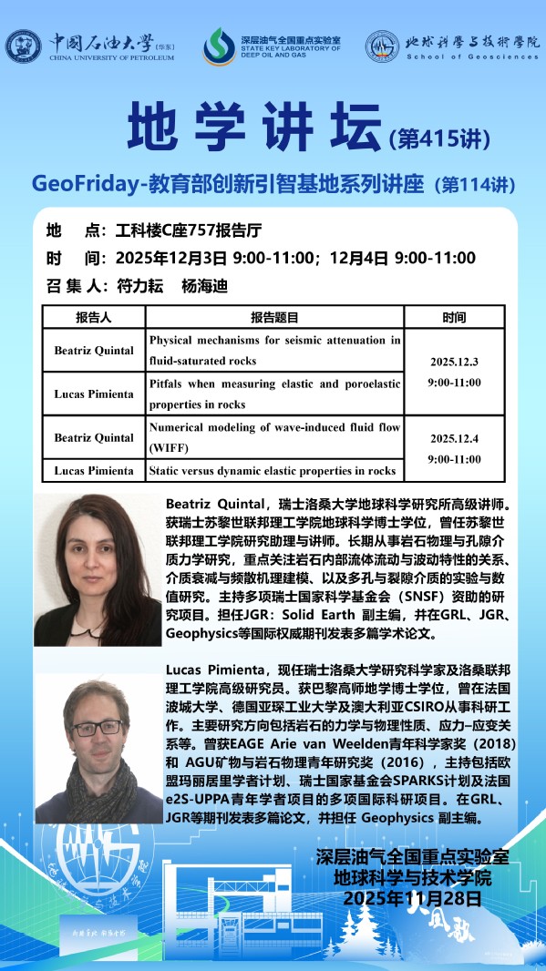 【地学讲坛第415讲】关于Lucas Pimienta 和 Beatriz Quintal 两位专家系列学术报告的通知