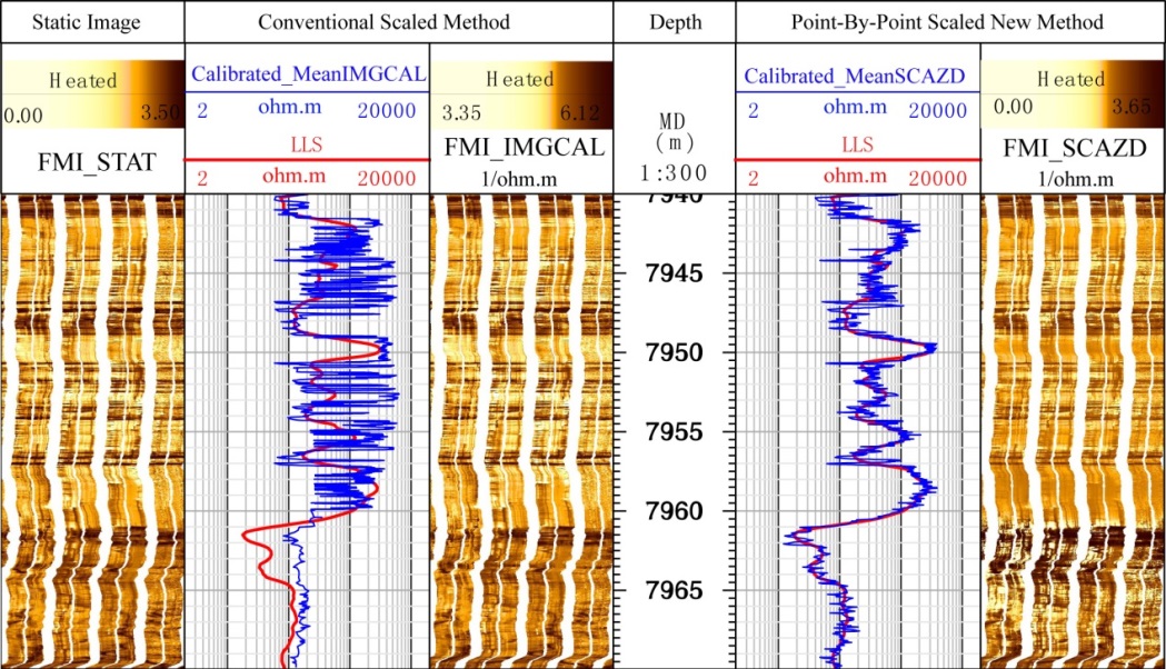 电成像由于纵向分辨率高成为解决碳酸盐岩储层问题的关键资料,电成像数据刻度是资料定量评价的基础。目前主流的电成像测井刻度方法为双对数坐标系下的分段线性刻度,该方法在强非均质性碳酸盐岩地层数据刻度存在误差大的问题,降低了后续一系列电成像定量评价精度。研究改进了传统的电成像数据刻度方法,实现了不同类型电成像仪器资料的统一逐点刻度与定量处理,降低了由于传统刻度方法人为因素导致的误差。在此基础上,采用电成像孔隙度谱等定量处理成果评价储层中的裂缝及孔洞,表征储层的有效性。