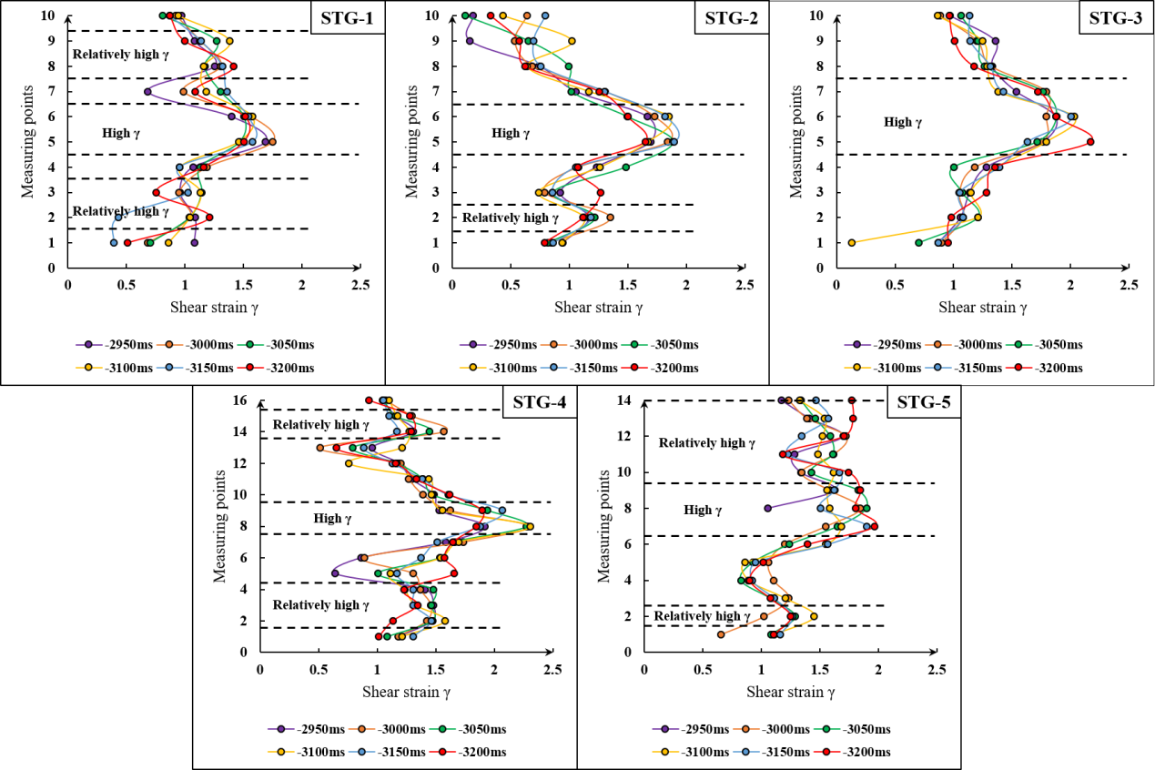 图1. 剪切带中Sigmoidal tension gashes边缘各点的剪切应变值(γ)计算结果
