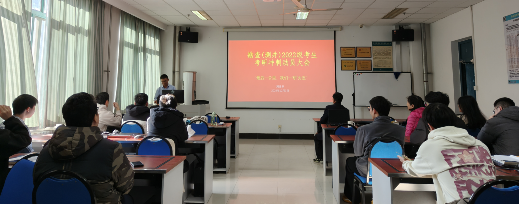 本科生考研冲刺动员会由王正楷主持,葛新民主任与系部分教师代表共同出席,勘查(测井)2025级考研学子们带着满腔热忱与坚定信念齐聚一堂。冲刺关头,时光如金,葛新民主任的发言满含温情与敬意:“挑灯夜读的每个深夜,伏案苦读的每个白昼,你们为梦想全力以赴的模样,既让人心疼,更让人敬佩。” 他由衷赞许学子们在考研路上展现的不屈不挠、顽强拼搏的精神,更送上贴心叮嘱:“冲刺阶段,作息是根基,身体是本钱,状态是关键。愿你们科学备考、张弛有度,以最佳姿态迎战考场。” 最后,他以诗意祝福寄语学子:“愿你们在考场上胸有成竹、才思泉涌,笔底生辉、灵感迸发,以满腹经纶书写人生华章,金榜题名不负韶华。” 其他教师们也纷纷表达,给予心理慰藉,传递着 “你们不是孤军奋战” 的温暖与力量,鼓励学子们相信自我、从容应战,以实力摘得理想硕果。
