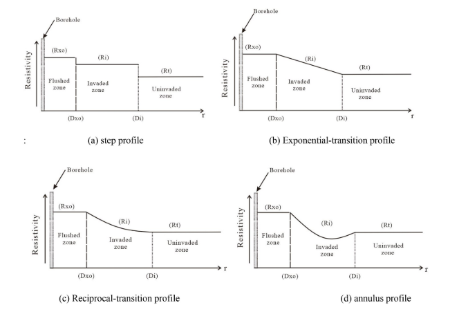 电阻率测井是储层评价的关键手段,在岩性识别、饱和度计算和流体识别中发挥着重要作用。但在钻井过程中,钻井液柱压力与地层压力的不平衡会导致钻井泥浆侵入渗透性地层,使地层形成冲洗带、过渡带和原状地层三个区域,导致实测电阻率无法准确反映地层真实电阻率。传统电阻率校正方法依赖校正图版,局限性强,无法满足复杂侵入条件下的精准校正。围绕这一问题,团队明确了完整研究思路,首先构建包含冲洗带电阻率Rxo、原状地层电阻率Rt、模型系数c和n及径向深度r的五参数地层电阻率模型,可自适应模拟阶跃型、过渡型、环状型等不同侵入剖面。在次基础上提出一种混合反演算法进行原状地层电阻率的求取,先用Metropolis-Hastings MCMC算法采样获取模型参数初始值,解决单一算法对初始值敏感的问题,再以该初始值为起点,通过Levenberg-Marquardt求解非线性最小二乘目标函数优化参数,最终实现原状地层电阻率的反演。