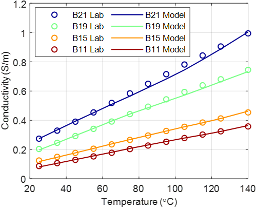 图3. Han等(2024)数据集中其余四个Berea砂岩样品的模型计算电导率与实测电导率的对比