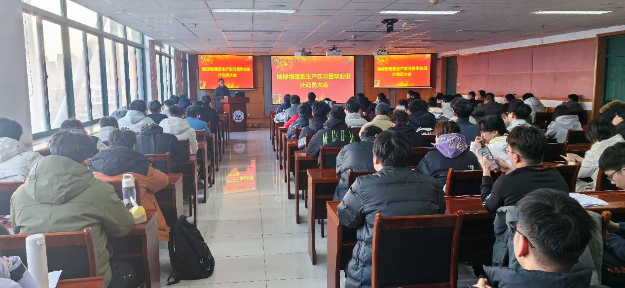 12月24日,地球物理系召开2026届本科毕业设计及生产实习动员会。全系教师、2022级勘查技术与工程(物探)、地球物理学和本研一体学生参加了会议。会议由地球物理系副主任张佳佳教授主持。
