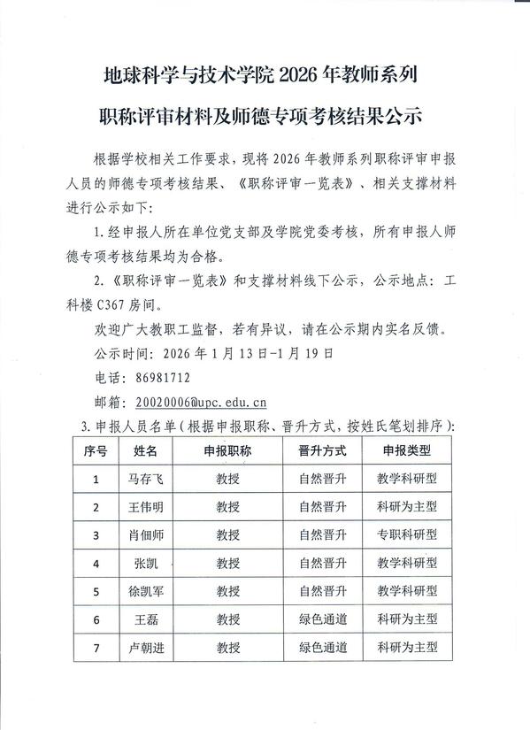 2026年教师系列职称评审材料及师德专项考核结果公示