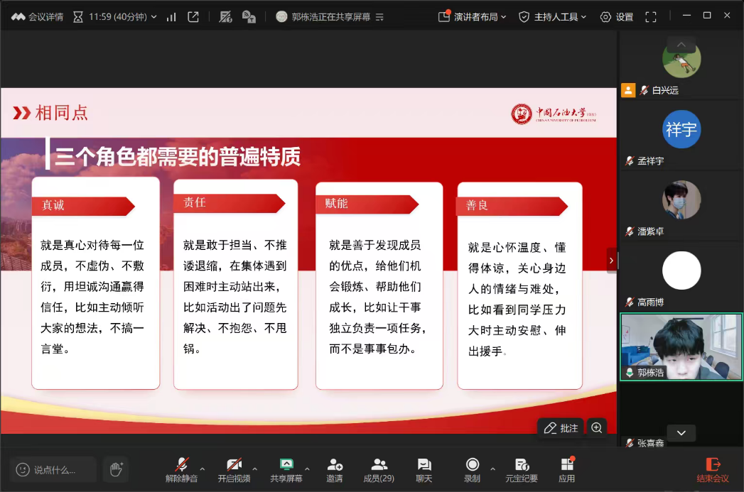 校学生会主席团成员郭栋浩受邀分享工作经验