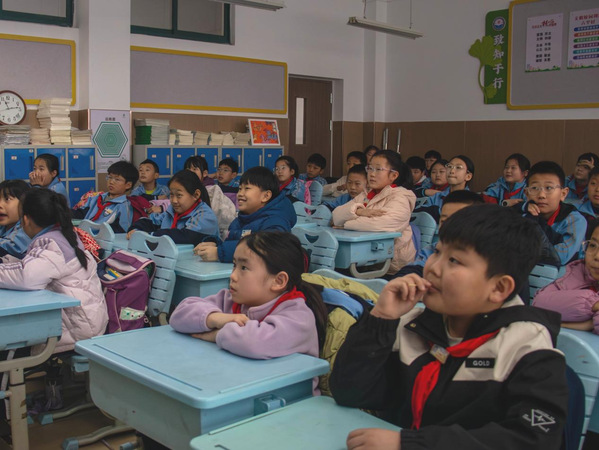 灵山卫小学学生认真听讲 徐洪瑞摄
